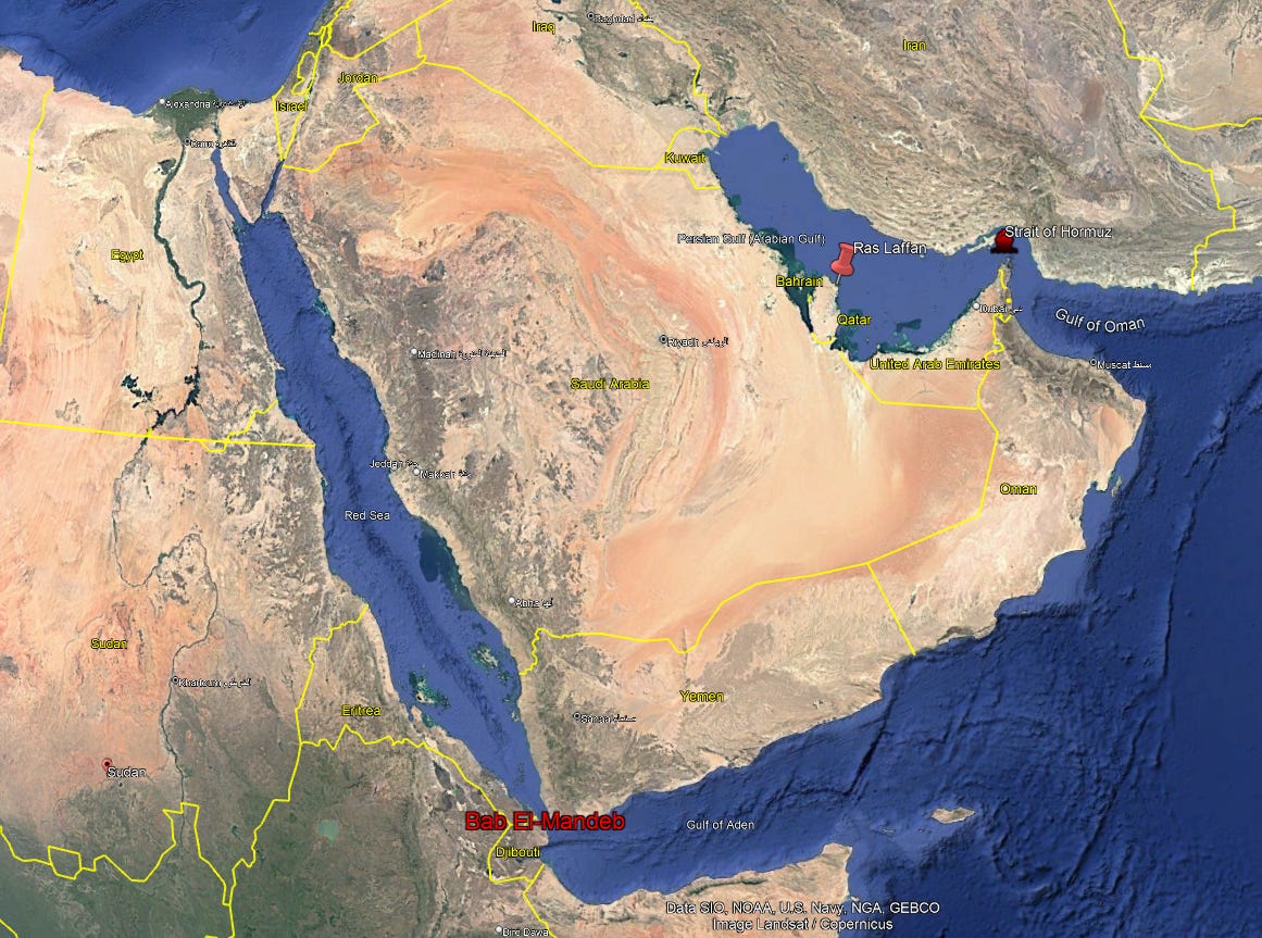 Iran and the Houthis attempting to close the Bab El-Mandeb Strait.