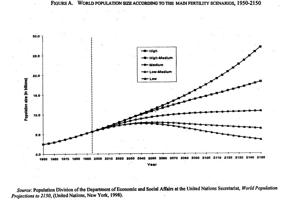 For example, three years before the United Nations (UN) Intergovernmental Panel on Climate Change (IPCC) issued its Third Assessment Report (2001), the UN issued this projection of global population out to the year 2150: