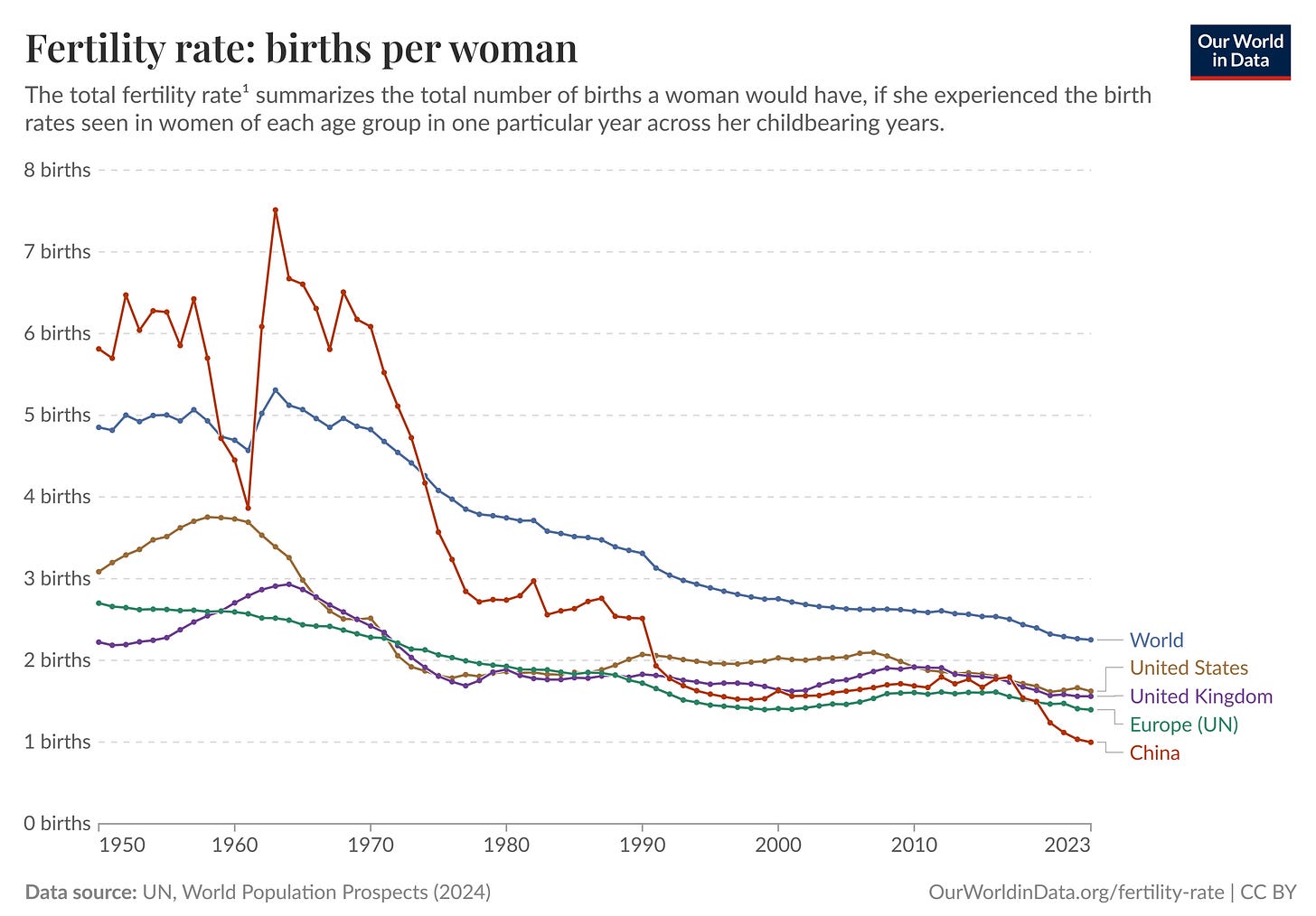 Something that was missed in all of the environmental and climate panic over the last several decades (and that Frezzos, Hagens, climate scientists and many others seem to miss) has changed so dramatically that, in our view, it renders all such worries moot in the long run: birth rates plummeted. A population crash awaits humanity.